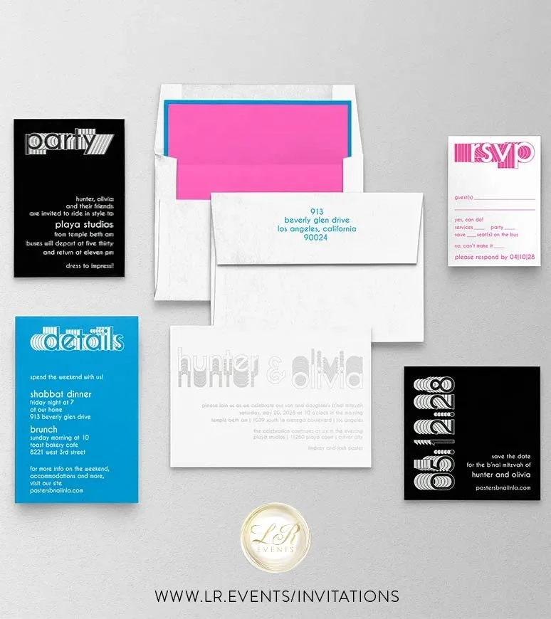 All invitations, paper goods and stationery are custom orders. Please email lauren@lr.events to get pricing and more details on the product you’re interested in. We can also set up an appointment for you to come in and view everything in person.